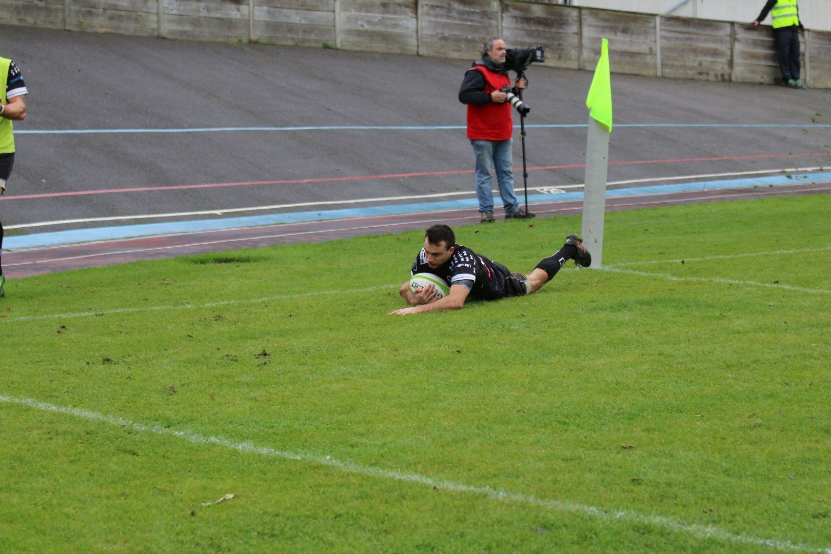 Christian Gergiou plonge dans l'en-but lors de la victoire du REC face à Plaisir (6e journée)