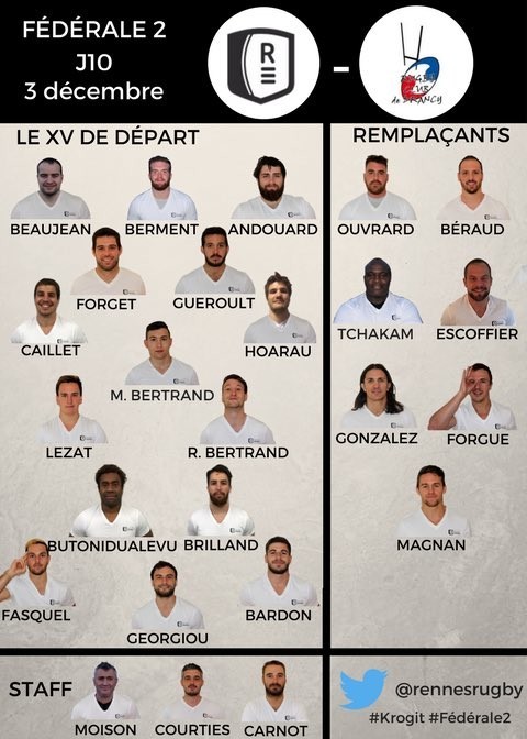La composition du groupe première face à Drancy (10e journée)