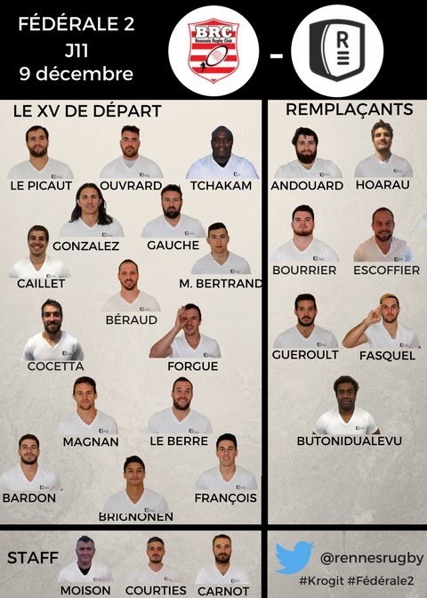 La composition du groupe première face à Beauvais (11e journée)