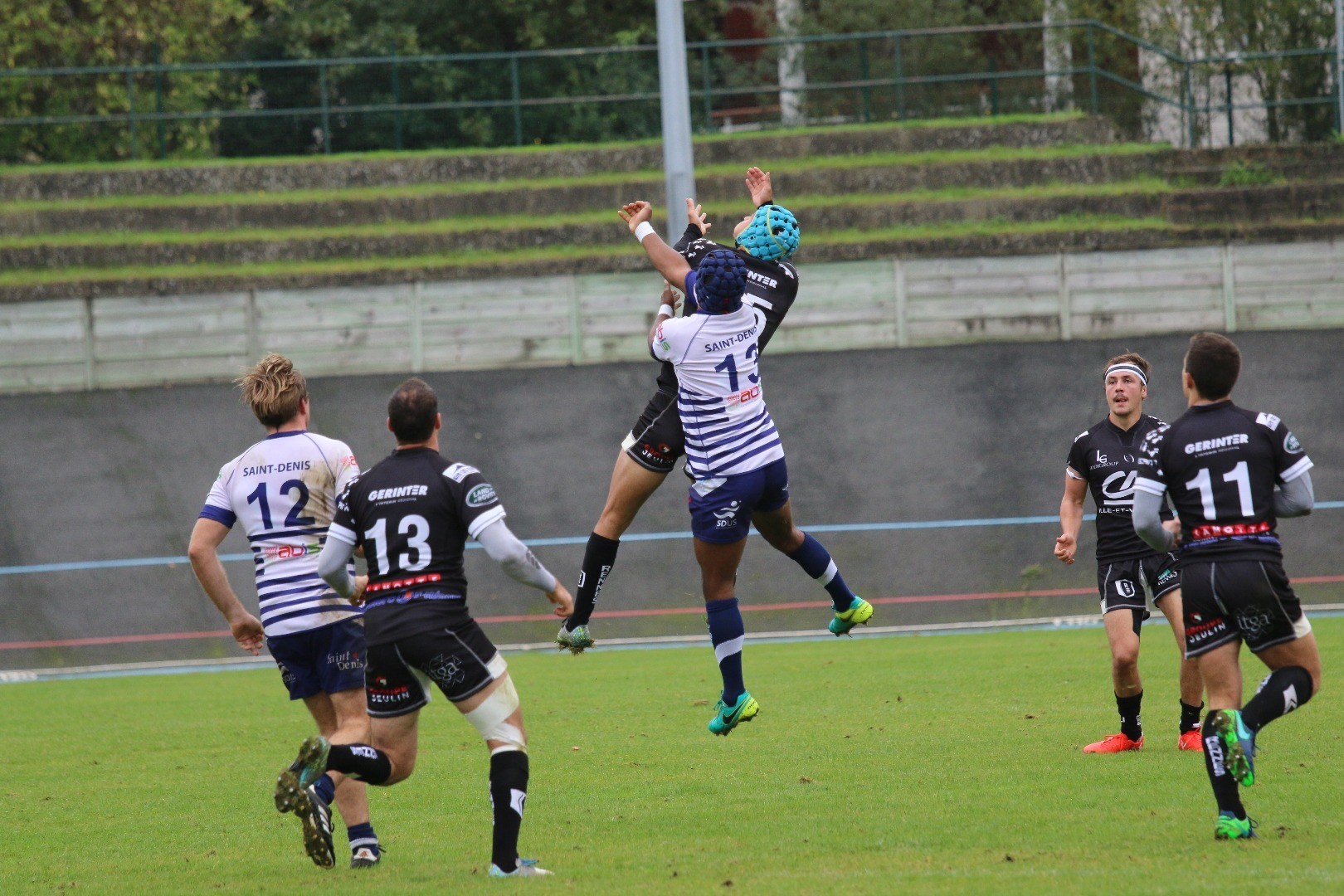 Mathieu Brignonen au duel aérien face au SDUS sous les yeux de Le Berre, Forgue et Cayot