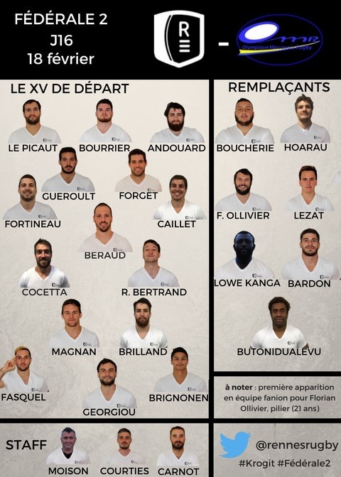 La composition du groupe première face à l'Olympique Marcquois (16e journée)