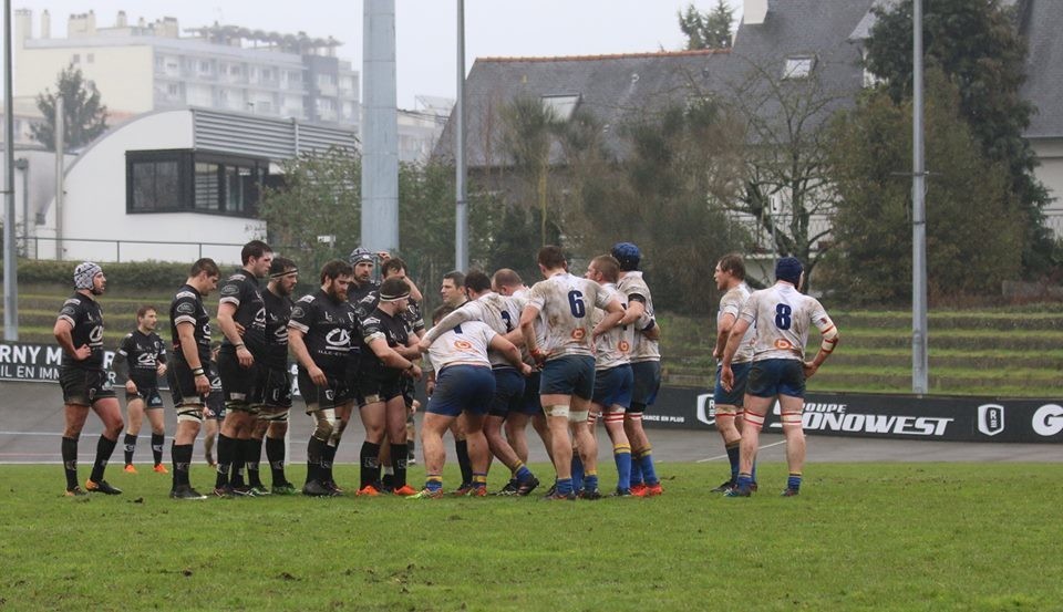 La mêlée réciste se prépare lors du match retour face à l'Olympique Marcquois