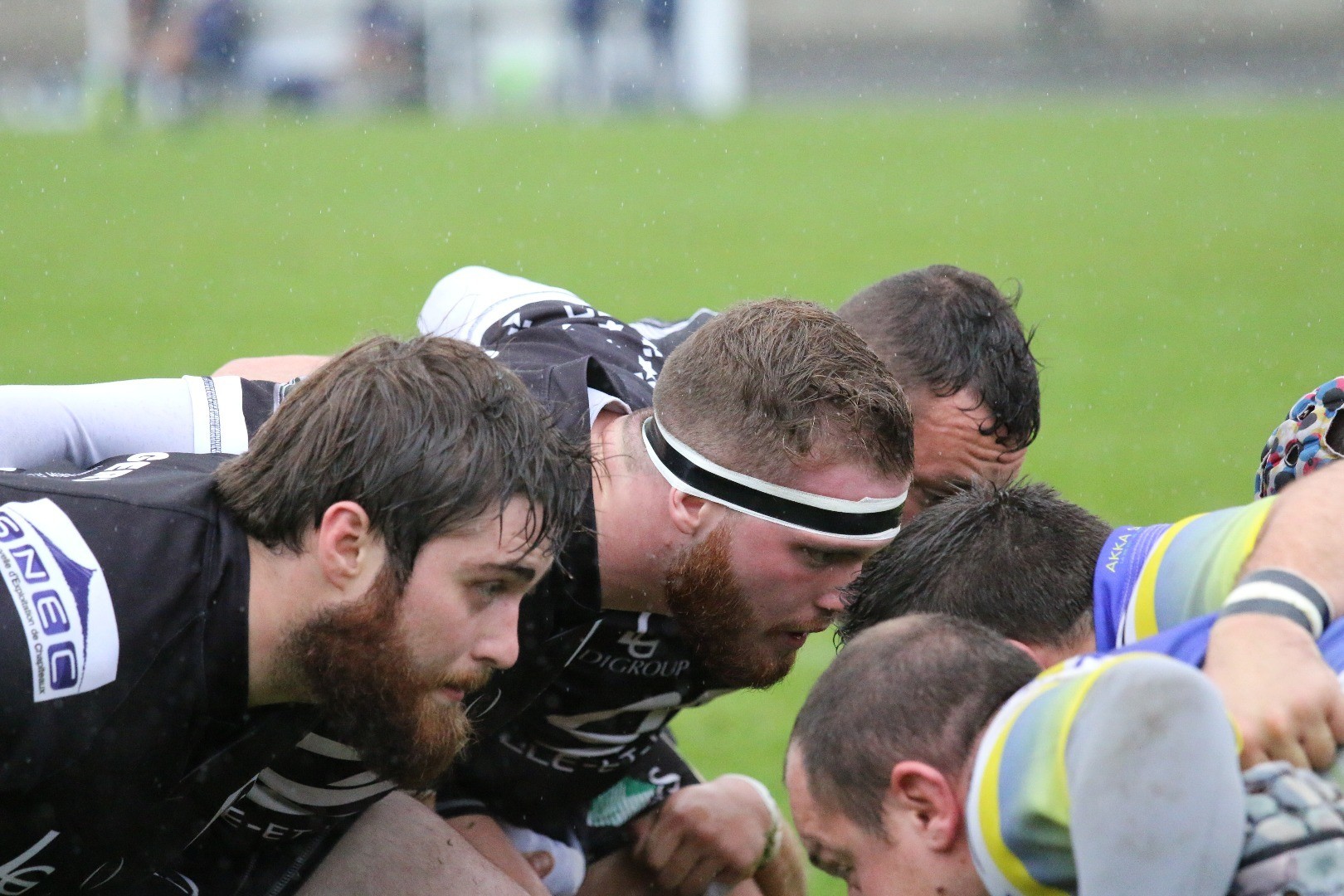 La première-ligne noire et blanche face à Plaisir : Andouard, Berment et Boucherie (de gauche à droite)