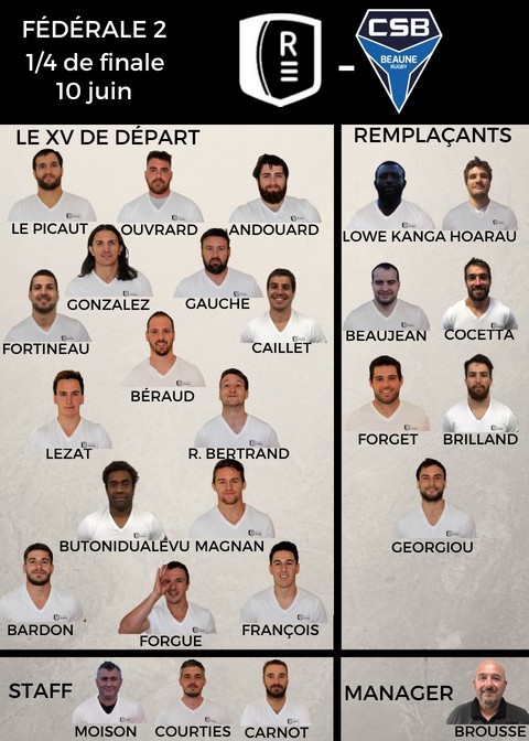 La composition de l'équipe fanion pour le 1/4 face à Beaune