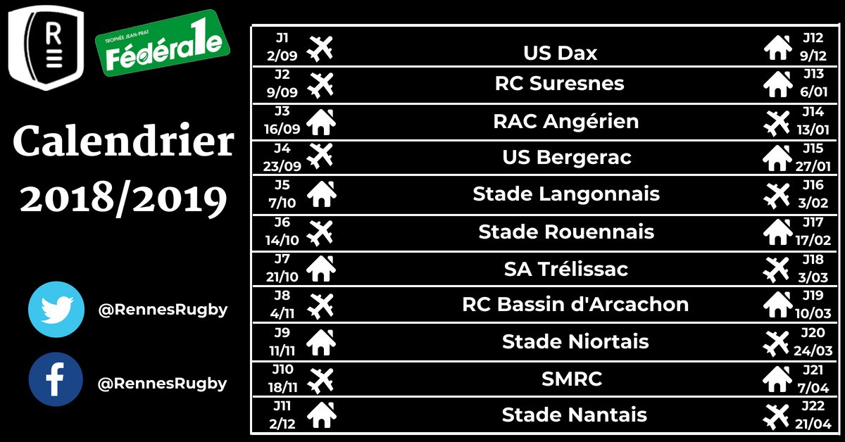 Calendrier du REC pour la saison 2018/2019 en Fédérale 1