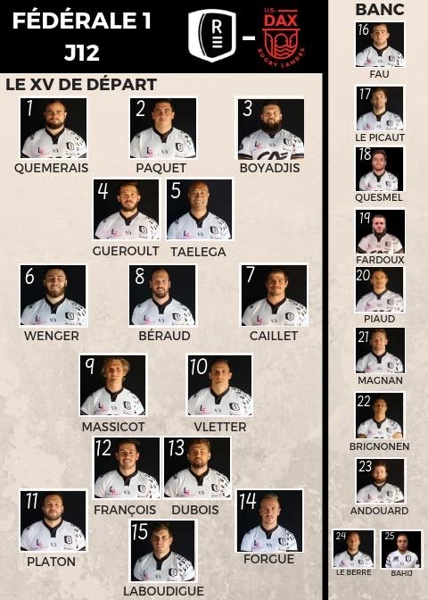 Description La composition du groupe contre Dax (J12) Légende ©Dominique Deblaise Téléchargement : /images/medias/REC-Dax_RC.jpg