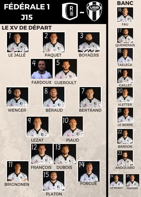 Description La composition du groupe face à Bergerac (J15) Légende © Téléchargement : /images/medias/REC-USB_Compo.jpg