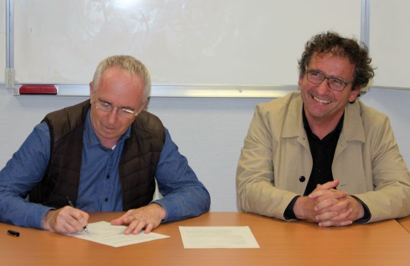 Franck Calvet, secrétaire général du Rec Rugby avec le Directeur de l'IME Espoir