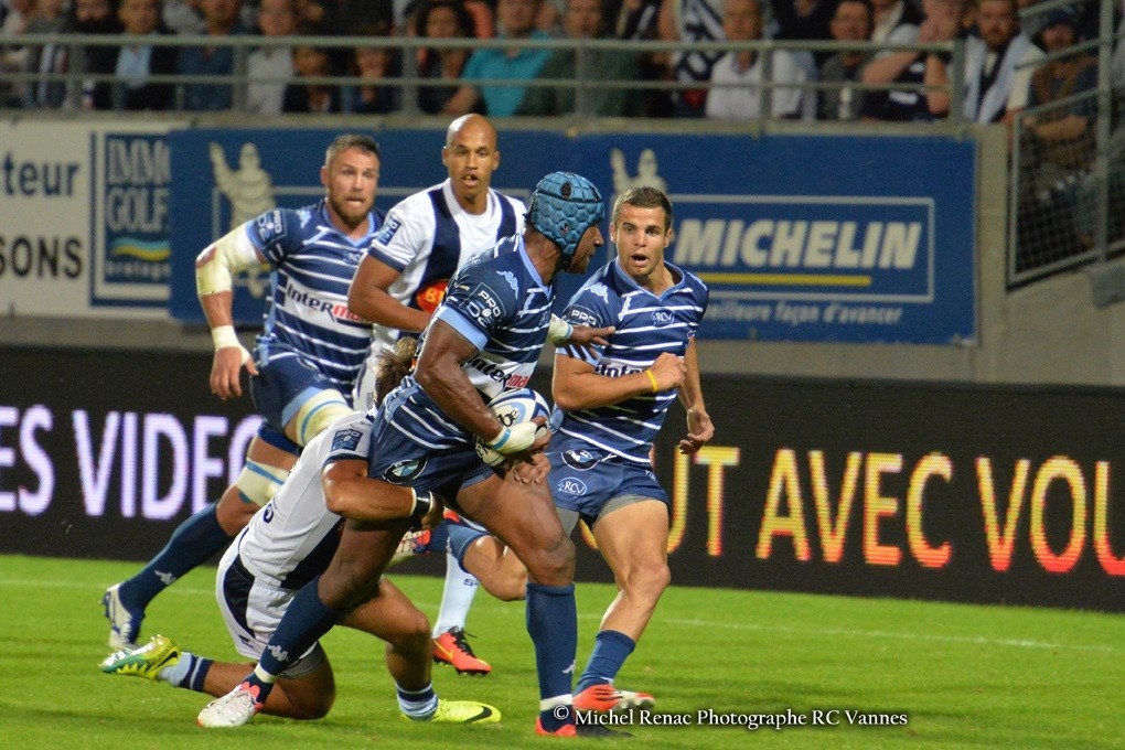 Aloisio Butonidualevu, balle en main, avec Vannes face à Agen, en PRO D2