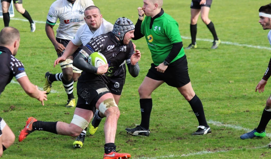 Gaëtan Béraud sonne la charge lors de la confrontation retour face à Gennevilliers (16/17) qui aboutira sur une victoire 28-17. Son casque est blanc, désormais...